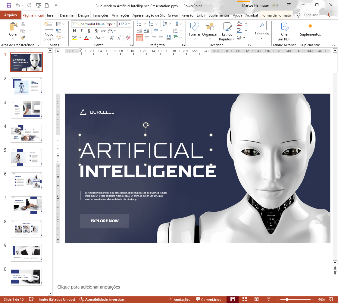 Dependendo do seu plano você pode realizar o download da apresentação no formato PPTX e continuar a edição utilizando o PowerPoint.